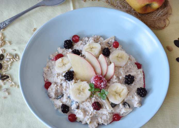 곡물과 과일을 함께 먹는 것이 좋습니다. 예를 들어, 오트밀에 바나나를 넣거나, 요거트와 견과류를 곁들여 먹을 수 있습니다.