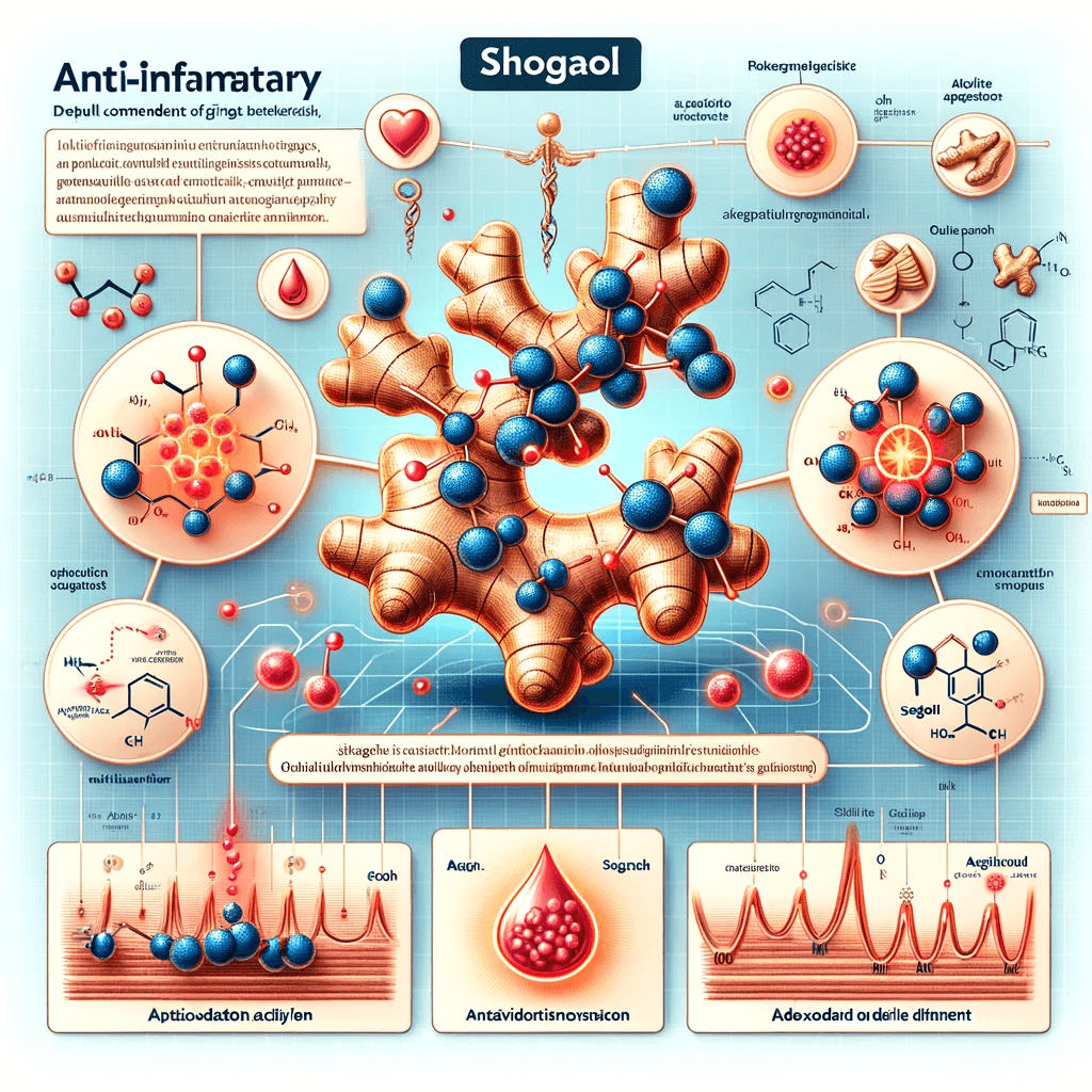 • 항염증 작용: 쇼가올 역지 진저롤과 유사한 항염증 효과를 가지고 있습니다. 이는 특히 관절염과 같은 염증성 질환에서 유익한 효과를 나타냅니다.